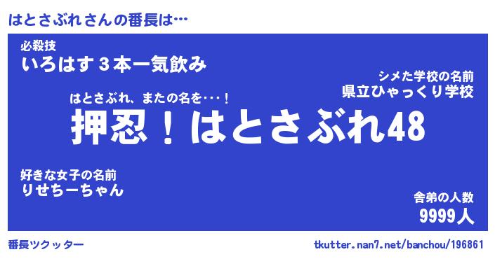 | ファンタジー風あだ名 | 『ハトフェル』『エターナルハトサブレー』 |