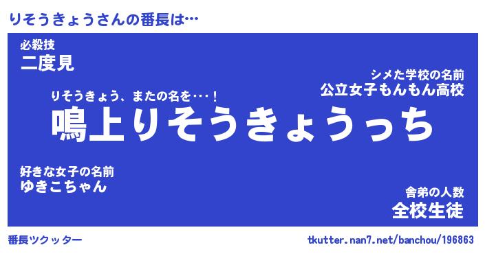 | 2回繰り返すあだ名 | 『りそりそ』『りりそそ』『ぽきぽき』 |