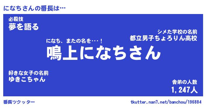 | ヒーロー風カッコイイあだ名 | 『スーパーニナチ』『ウルトラになちマン』 |