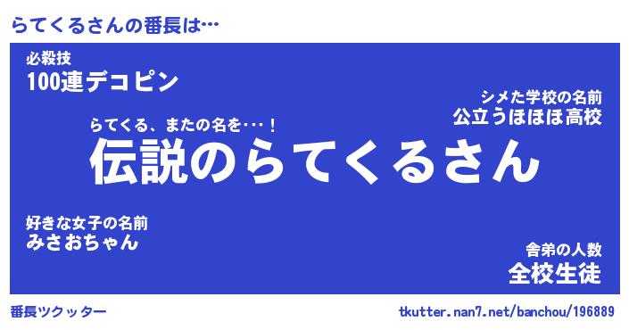 | 肩書あだ名 | 『らてくる店長』『らてくる国家主席』 |