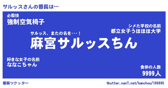 | ヒーロー風カッコイイあだ名 | 『スーパーサルッス』『暗黒騎士サル』 |