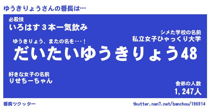 | ポケモン風あだ名 | 『ユウチュウ』『ユウキダネ』 |