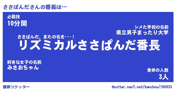 | 欧米人風あだ名 | 『マイケルささぱんだ』 |