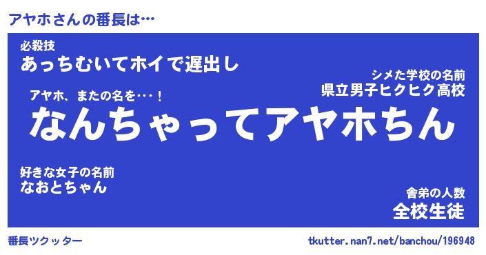 | 肩書あだ名 | 『アヤホ店長』『アヤホ総理大臣』 |