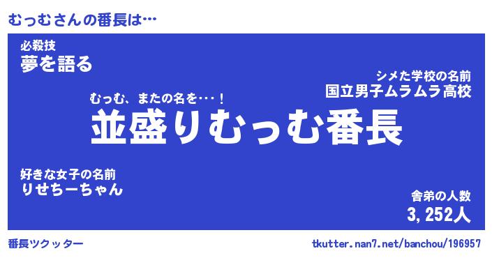| 肩書あだ名 | 『むっむ社長』『むっむ国家主席』 |