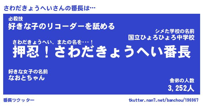 | 意味不明あだ名 | 『ペロリンさわだきょうへい』 |
