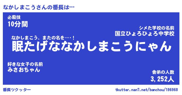 | 伝説のあだ名 | 『封印されし竜騎士なかしまこう』 |