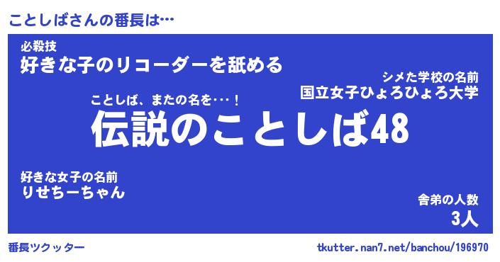 | 意味不明あだ名 | 『ペロリンことしば』『永久保存ことしば』 |