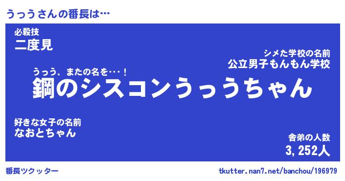 | ヒーロー風カッコイイあだ名 | 『スーパーウッウ』『ウルトラうっうマン』 |