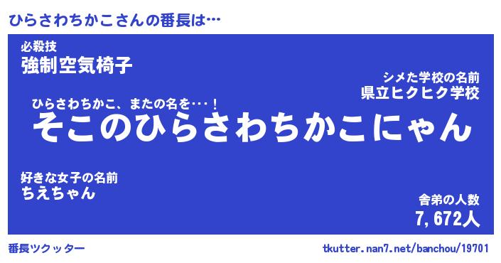 | ヒーロー風カッコイイあだ名 | 『スーパーヒラサワチカコ』 |