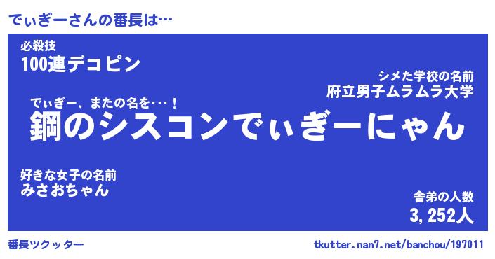 | 意味不明あだ名 | 『ペロリンでぃぎー』『永久保存でぃぎー』 |