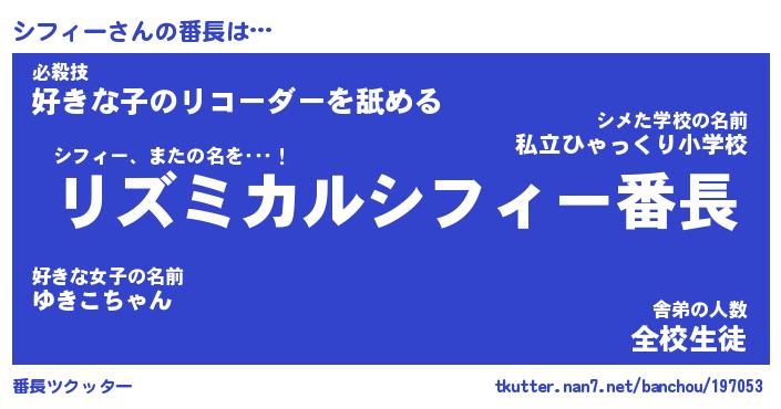 | ヘコむあだ名 | 『シフもー』『なまこ酢』『シフを』 |