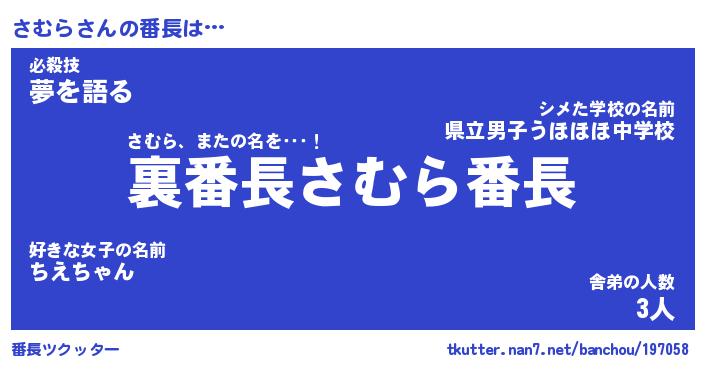 | ヒーロー風カッコイイあだ名 | 『スーパーサムラ』『ウルトラさむらマン』 |