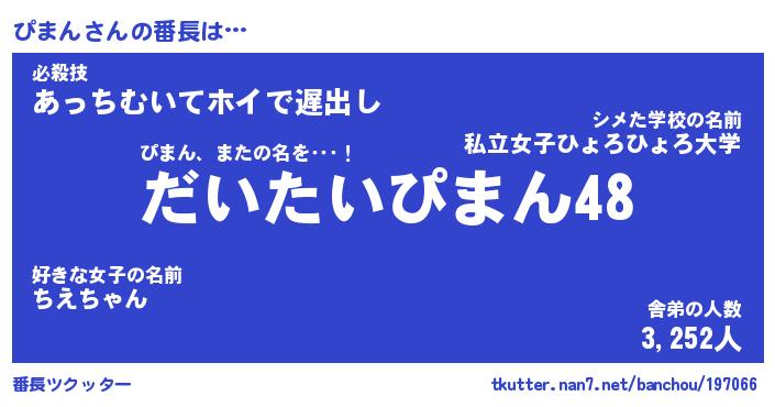 | ヘコむあだ名 | 『ぴまもー』『豆乳』『ぴまっぺ』 |