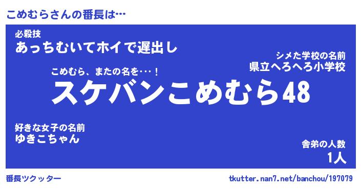 | 意味不明あだ名 | 『ペロリンこめむら』『永久保存こめむら』 |