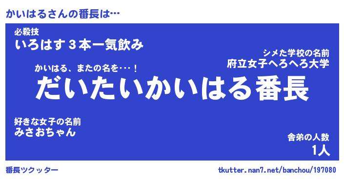 | 意味不明あだ名 | 『ペロリンかいはる』『永久保存かいはる』 |