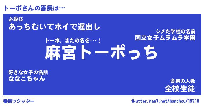 | ヒーロー風カッコイイあだ名 | 『スーパートーポ』『ウルトラトーポマン』 |