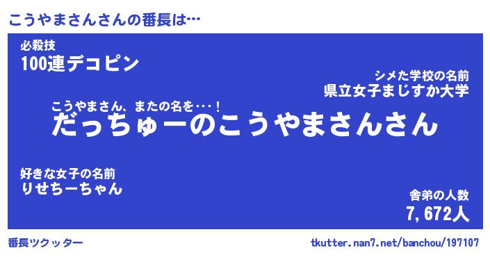 | ピコ太郎風あだ名 | 『ココ四郎』『ピコ太郎』『コウ十郎』 |