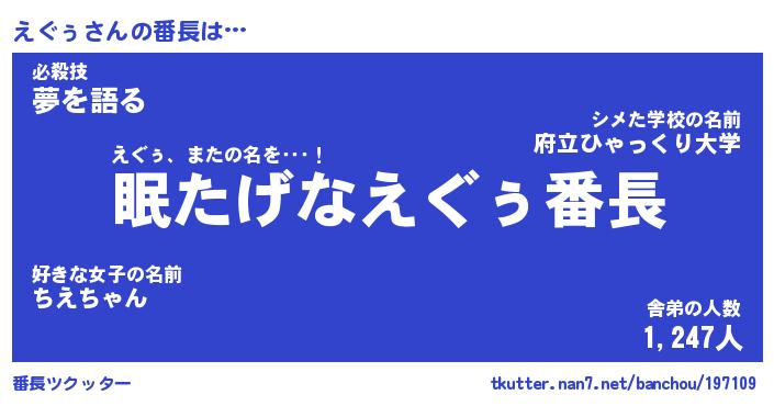 | ヒーロー風カッコイイあだ名 | 『スーパーエグゥ』『ウルトラえぐぅマン』 |