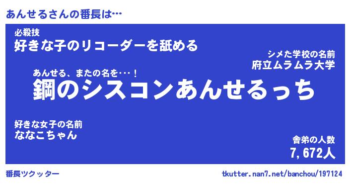 | ヘコむあだ名 | 『あんもー』『牛乳』『あんっぺ』 |