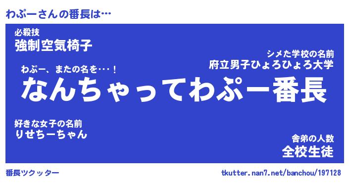 | ヒーロー風カッコイイあだ名 | 『スーパーワプー』『ウルトラわぷーマン』 |
