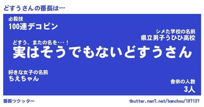 | ヒーロー風カッコイイあだ名 | 『スーパードスウ』『ウルトラどすうマン』 |