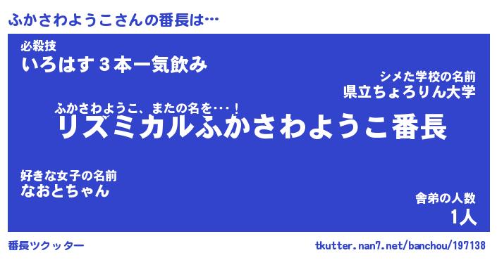 | 肩書あだ名 | 『ふかさわようこ御曹司』 |