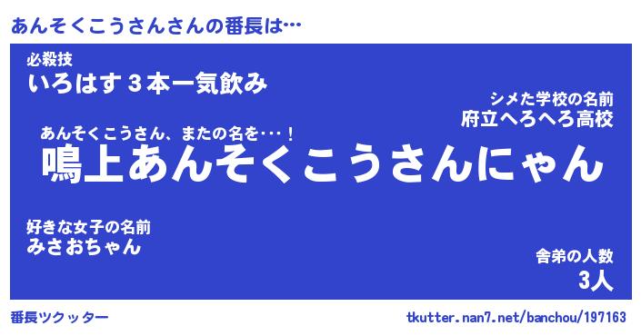 | 肩書あだ名 | 『あんそくこうさんCEO』 |