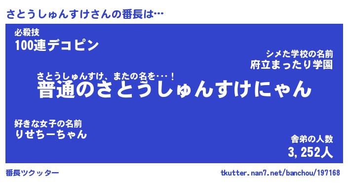 | 伝説のあだ名 | 『不死鳥のスナイパーさとうしゅんすけ』 |