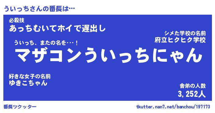 | 意味不明あだ名 | 『ペロリンういっち』『永久保存ういっち』 |