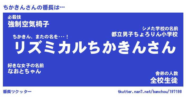 | 意味不明あだ名 | 『ペロリンちかきん』『永久保存ちかきん』 |