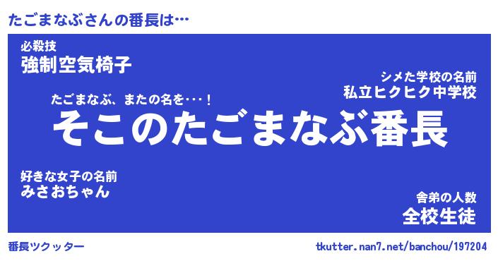 | ヒーロー風カッコイイあだ名 | 『スーパータゴマナブ』『暗黒騎士タゴ』 |
