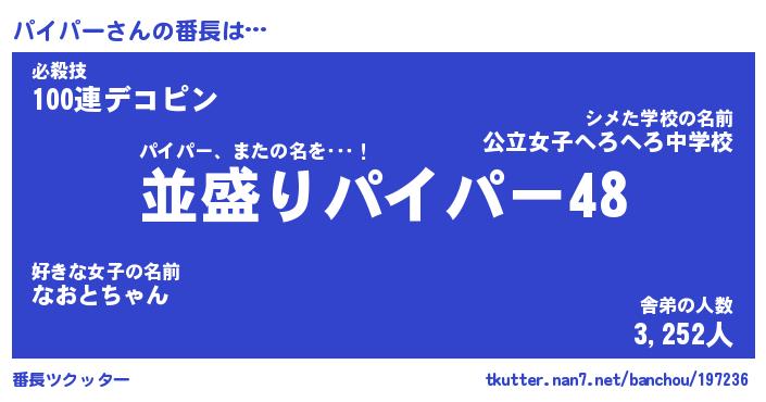 | ポケモン風あだ名 | 『パイチュウ』『パイパダネ』 |