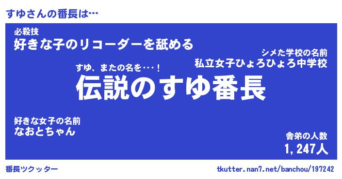 | 伝説のあだ名 | 『伝説のスナイパーすゆ』 |