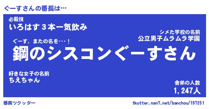 | 肩書あだ名 | 『ぐーす店長』『ぐーす大統領』 |
