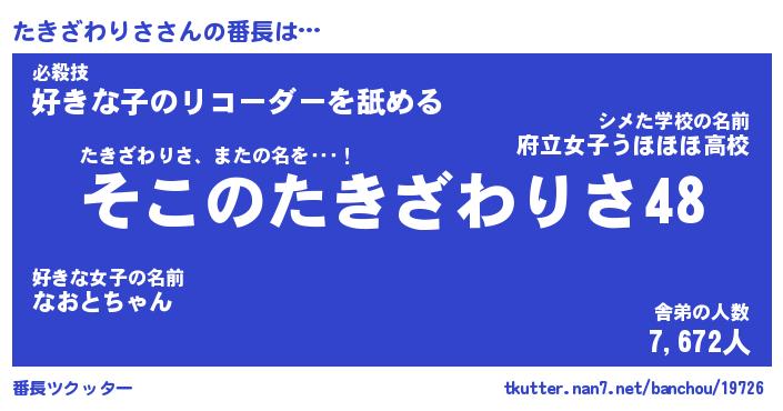 | 伝説のあだ名 | 『不死鳥のスナイパーたきざわりさ』 |