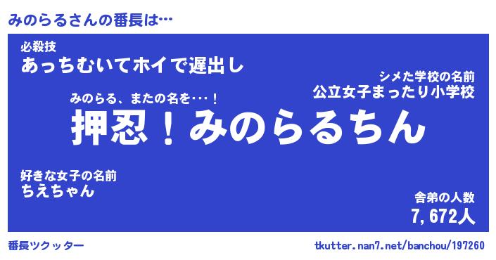 | ピコ太郎風あだ名 | 『ミコ六郎』『ピミ八郎』『ミノ十郎』 |