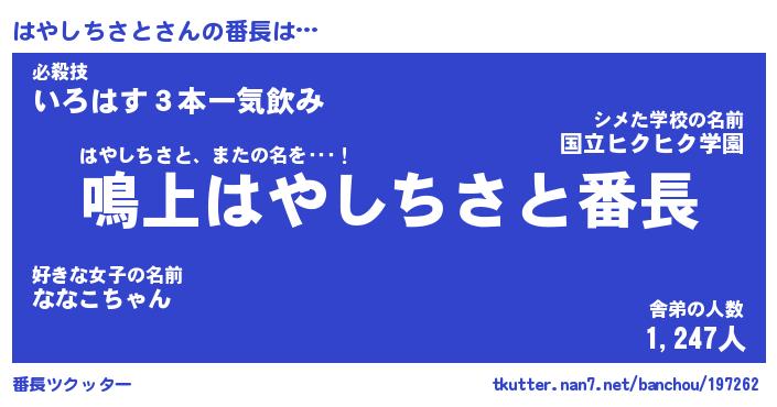 | 肩書あだ名 | 『はやしちさと社長』『はやしちさと班長』 |