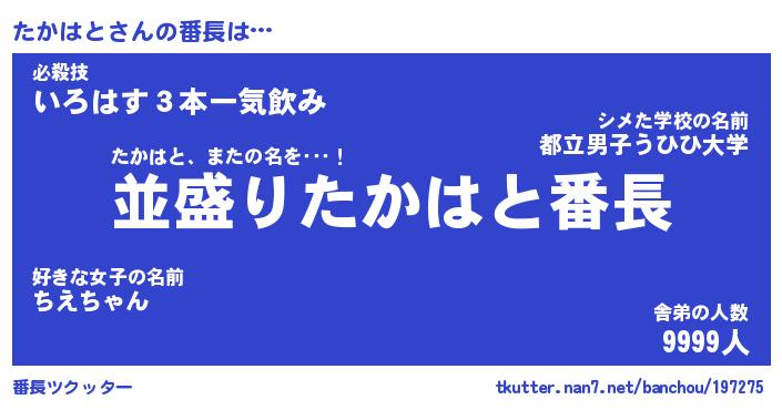 | 肩書あだ名 | 『たかはと御曹司』『たかはと大統領』 |