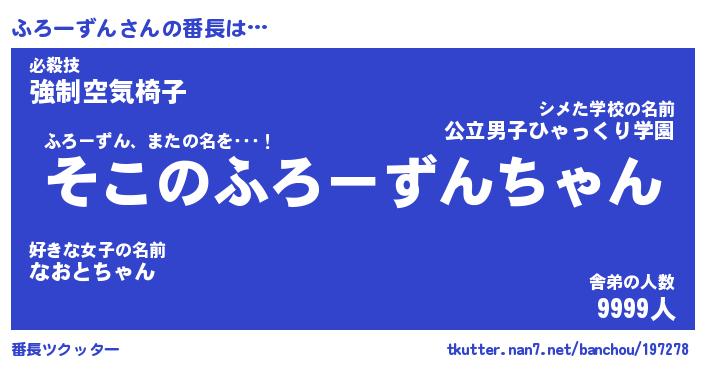 | 男性向けラノベタイトル風あだ名 | 『ふろーずんの憂鬱』 |