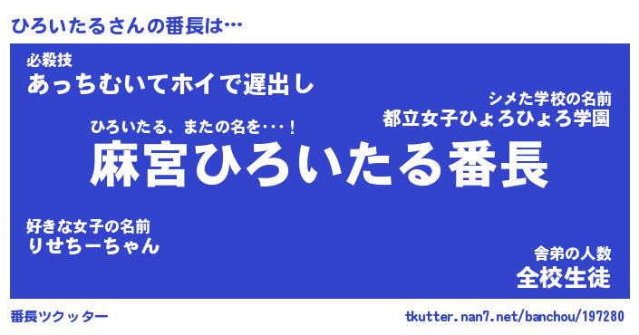 | ファンタジー風あだ名 | 『ヒロフェル』『エターナルヒロイタルー』 |