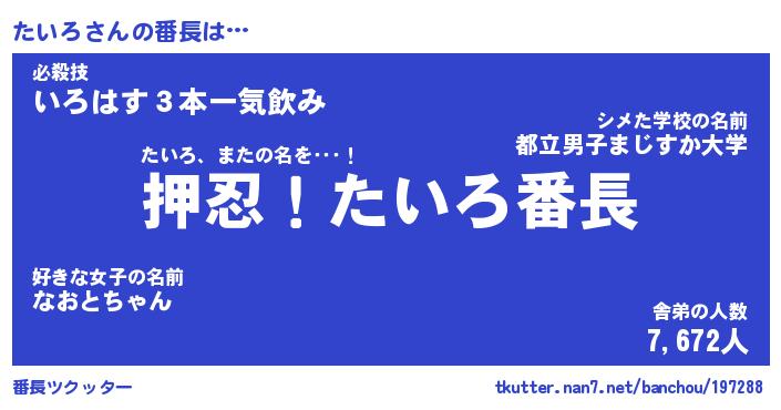 | 意味不明あだ名 | 『ペロリンたいろ』『たいろフォーエバー』 |