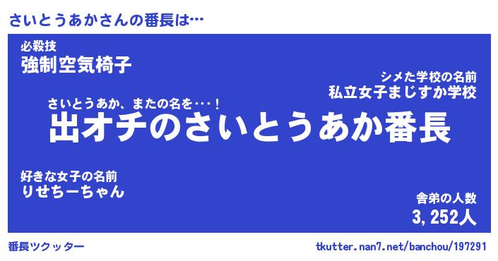 | 恥ずかしいあだ名 | 『プリティーさいとうあか』『さいっちょ』 |