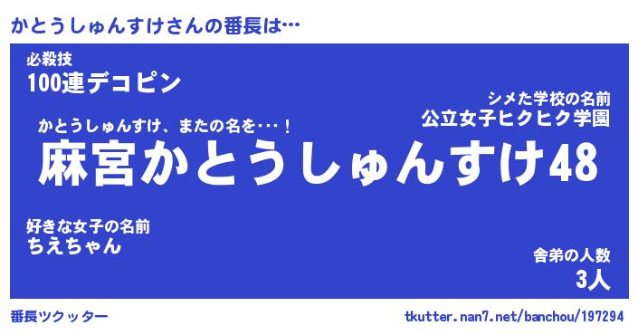 | 肩書あだ名 | 『かとうしゅんすけ御曹司』 |