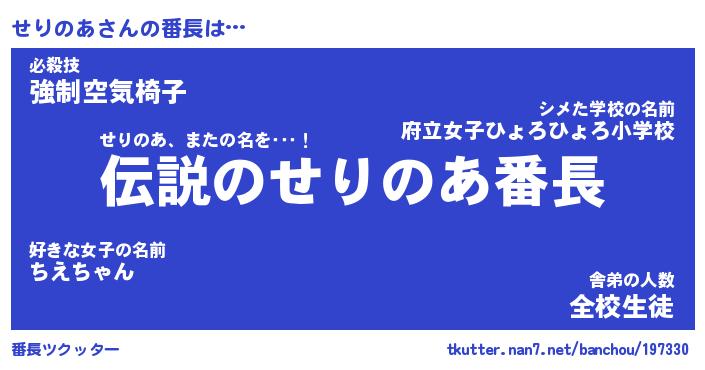 | 伝説のあだ名 | 『伝説のスナイパーせりのあ』 |