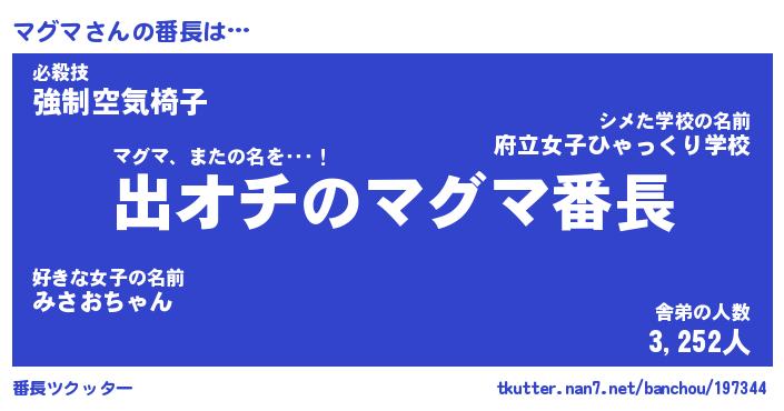 | ヒーロー風カッコイイあだ名 | 『スーパーマグマ』『ウルトラマグママン』 |