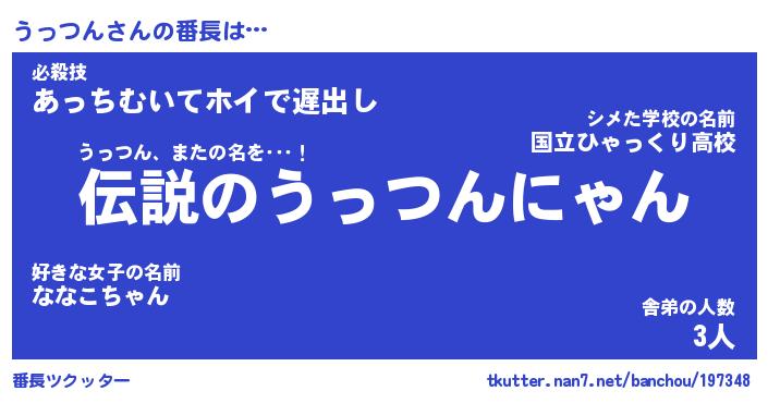 | 意味不明あだ名 | 『ペロリンうっつん』『永久保存うっつん』 |