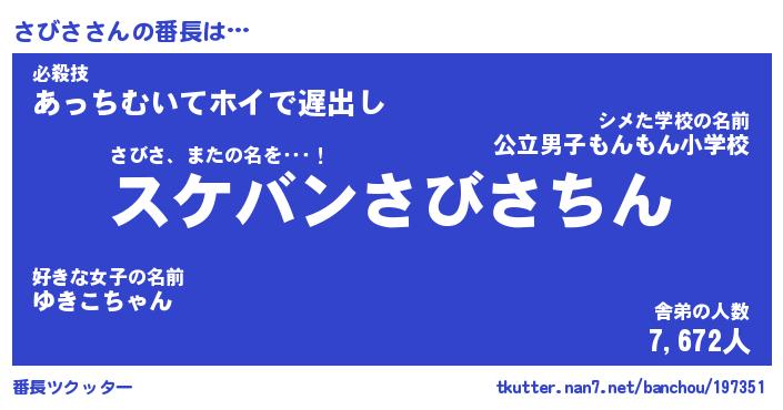 | 意味不明あだ名 | 『ペロリンさびさ』『さびさフォーエバー』 |