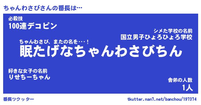 | 伝説のあだ名 | 『封印されしスナイパーちゃんわさび』 |