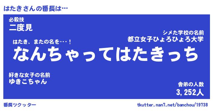 | ポケモン風あだ名 | 『ハタチュウ』『ハタキダネ』 |